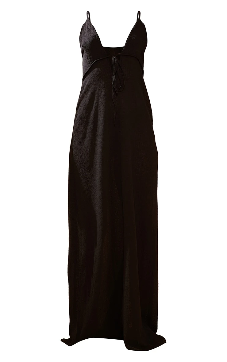 Go for that glam vibe with this next level beach dress doll. Featuring a black crinkle material with a tie design and a maxi length. Style with your fave bikini and simple accessories for a combo we’re crushing on.