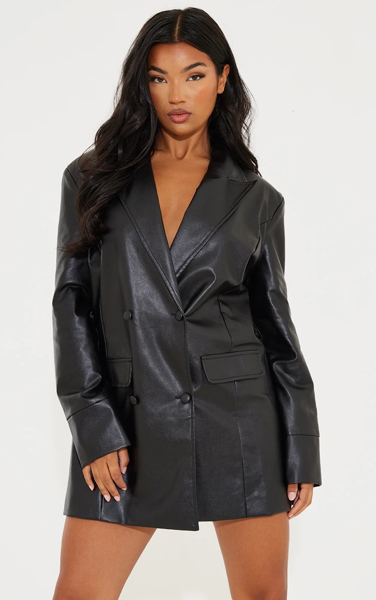 Nail major trends this season with this unreal dress. Featuring a black faux leather material with a button down design and an oversized fit. Team with chunky boots and a statement hue clutch bag for a combo we’re crushing on.