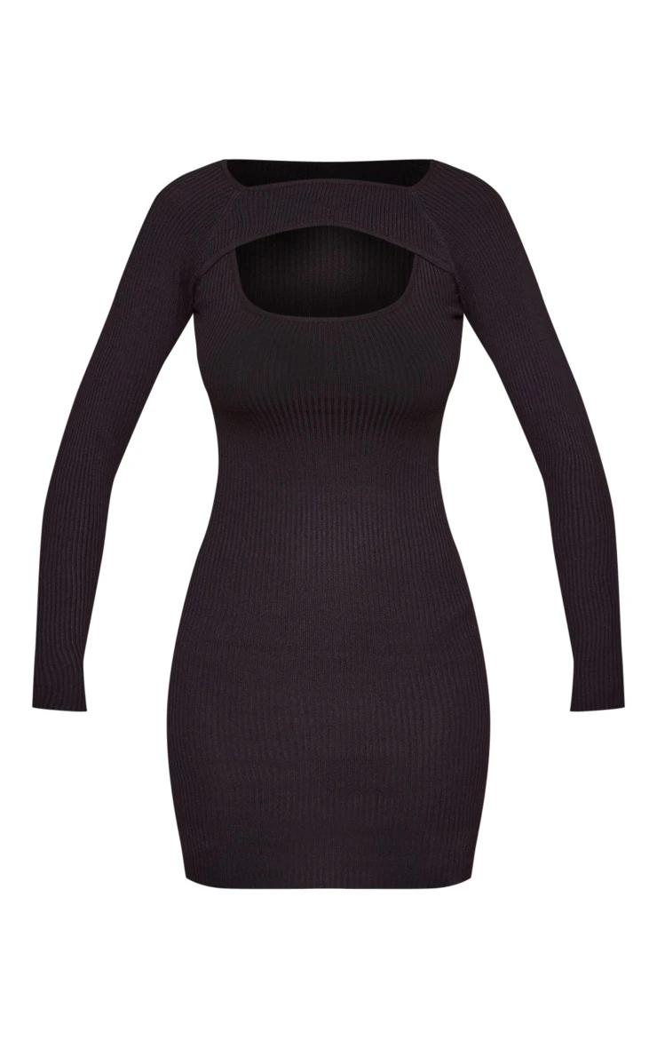 Give your new season wardrobe the ultimate chic upgrade with this black front cut out rib knit mini dress. Whatever your plans, this unreal dress is sure to be at the top of your wish list. It features a black rib knit material with a cut out front design and a figure-worshipping fit, get ready to have heads turning for all the right reasons. Team with knee high heeled boots and a trench coat for a fierce finish.