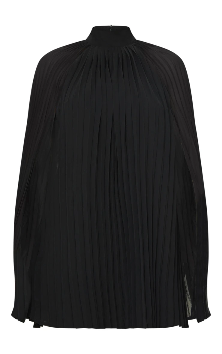 Elevate your weekend look doll with this elegant shift dress. Featuring a black fabric with pleated detailing and a cape design, team this with heels and gold jewellery for a look we’re loving.