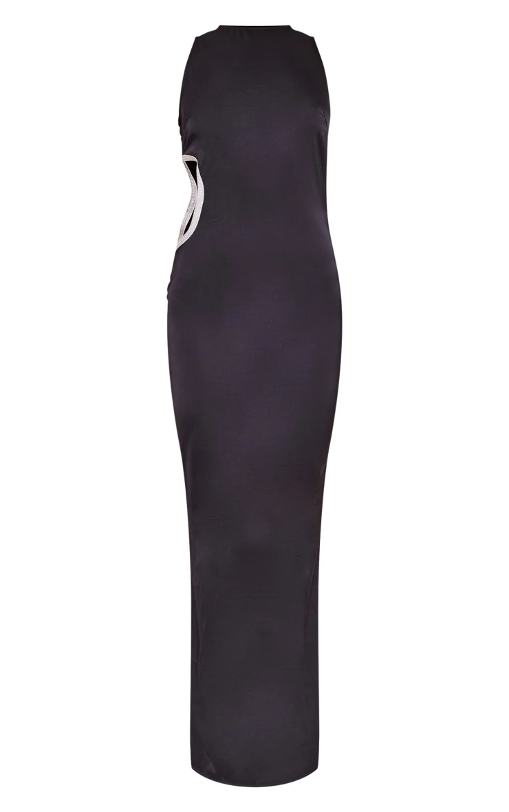 Get ready for your next big event in style with this dreamy black satin embellished side cut out detail maxi dress, you’re sure to be stealing all the stares doll. This dress is made using a black satin material with an embellished cut out out design and a maxi length, how could you not be in love? Wear with clear slip-on heels and minimal accessories for a look no one will forget.