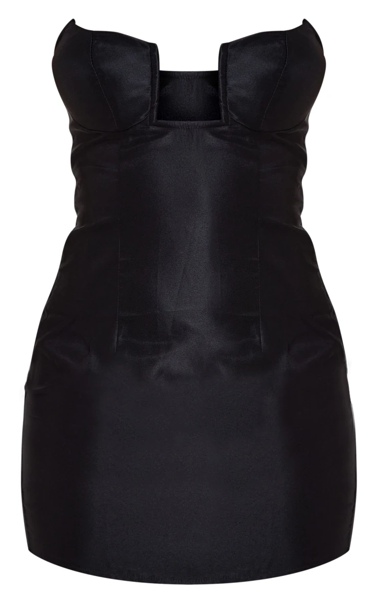Your weekend look is finally sorted with this unreal black satin V bar bandeau bodycon dress. In a luxe black satin feel material with a figure-enhancing bodycon fit, you are sure to make heads turn in this dress doll. With a V bar design and a bandeau neckline, you just can’t go wrong. Style with glam heels and a matching hue mini bag for a look that will really make a statement.