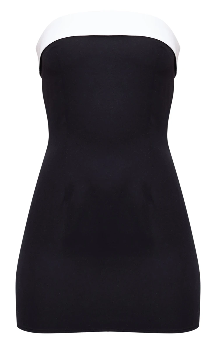 This bodycon dress is sure to be the newest member of your glam squad doll. Featuring a black woven material with a contrast bandeau design and a figure-worshipping fit, we are in love. Pair with a shoulder bag, hoop earrings and high heels for a side serving of style.