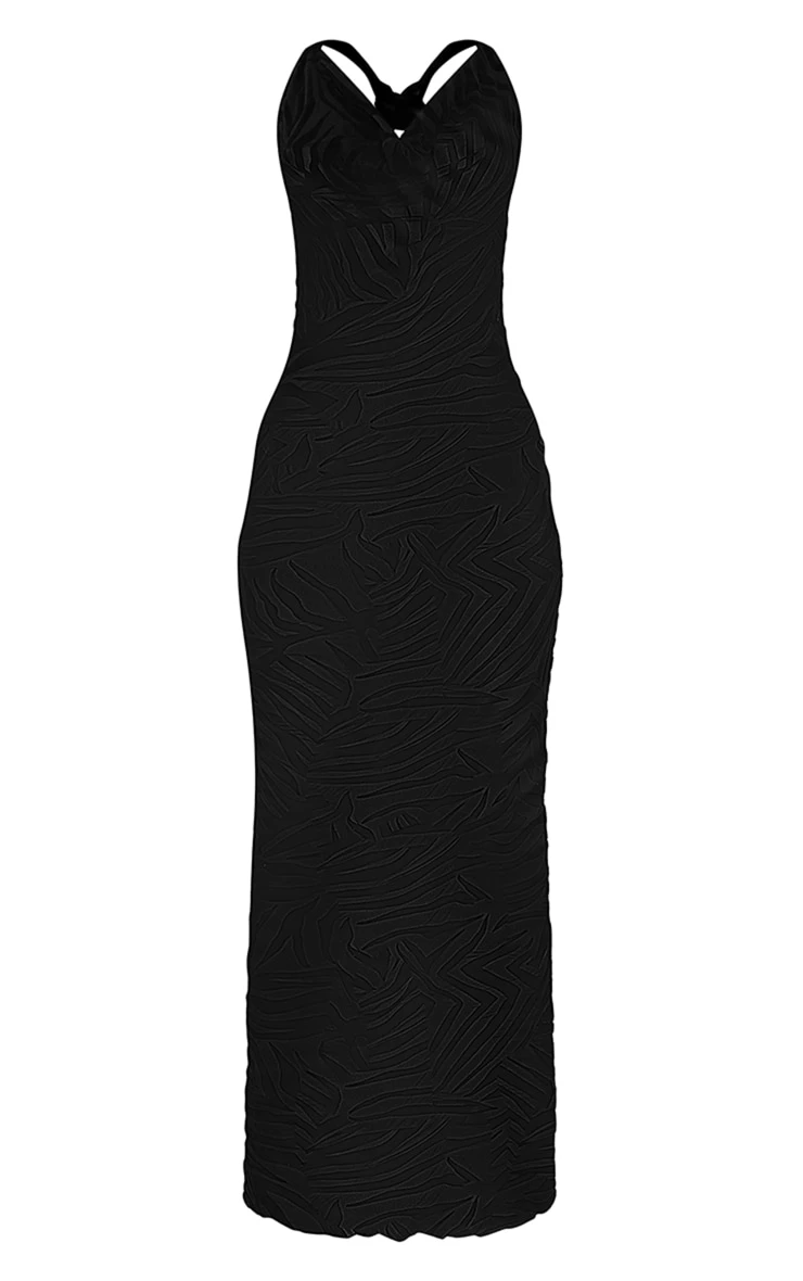 Become a showstopper this weekend with this black zebra flocked sheer knot detail maxi dress. Whether you have a special occasion in your diary or a romantic date night planned, this maxi dress is the perfect styling piece. With a black zebra flocked sheer material, knot detail, a plunging neckline, and a figure-hugging fit, how could you say no? Give yourself that flawless finish with clear heels and staple accessories.