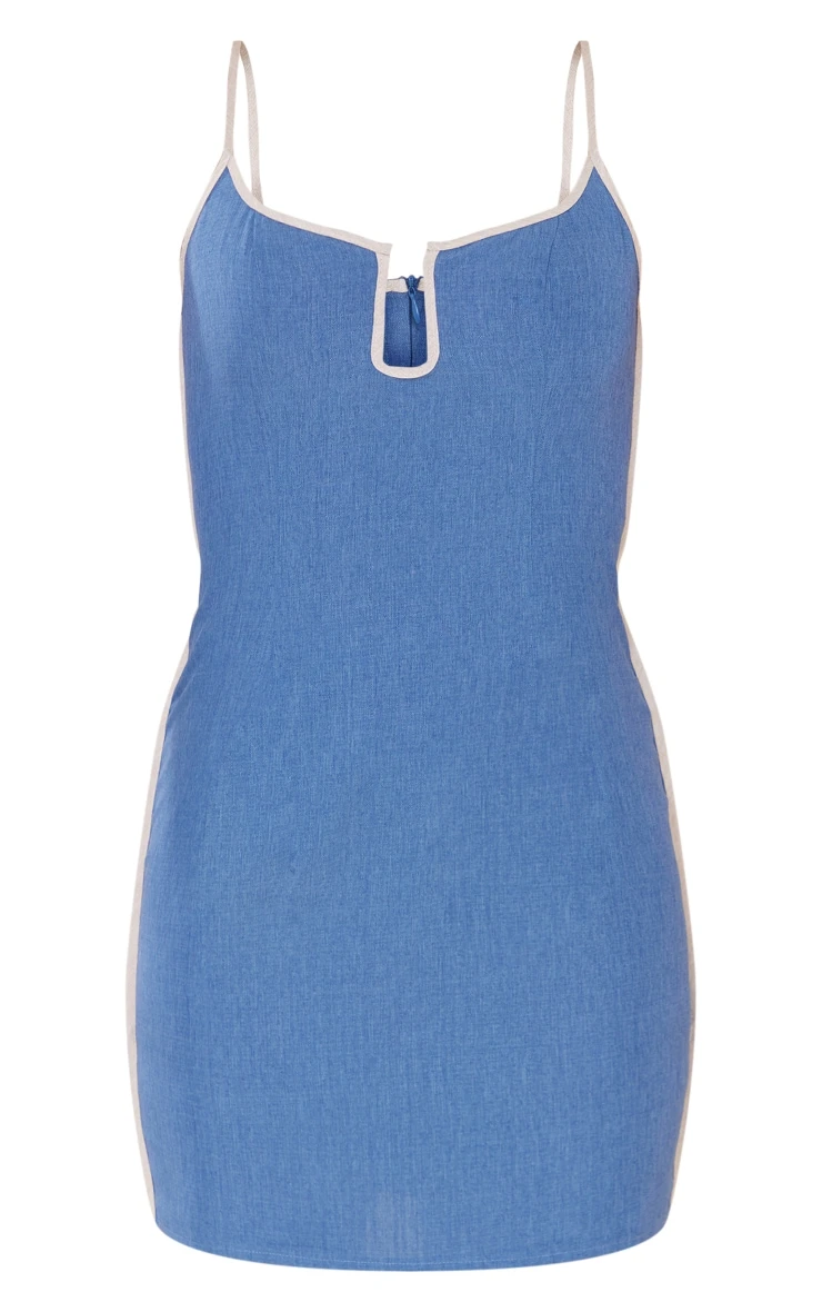 Take your look to new levels with this blue linen look v bar contrast seam strappy bodycon dress. This unreal dress is perfect for those brunch plans with the dolls. With its blue linen material, we are seriously obsessed. With its v bar design and contrast seam detailing, you won’t be able to resist. Team this strappy bodycon dress with some of your fave heels and your go-to gold hoops to complete the look.