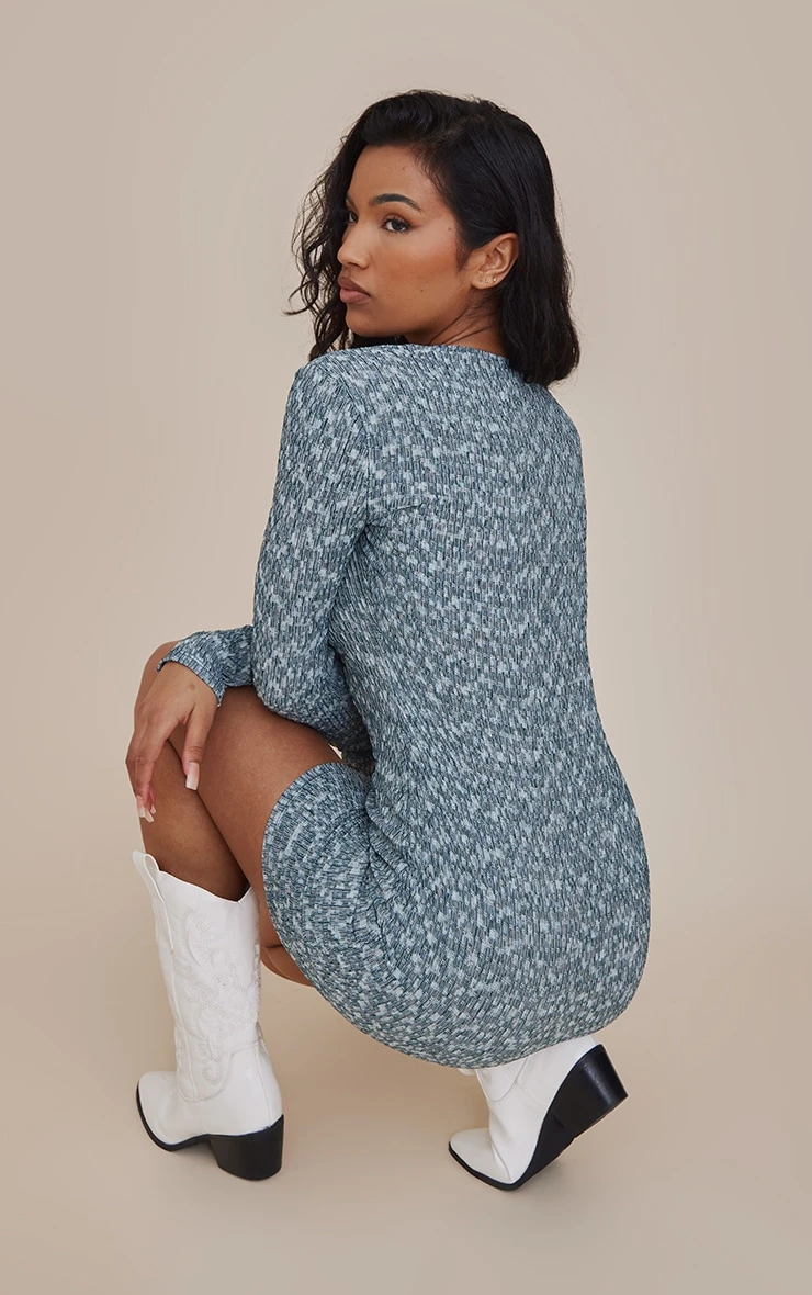 We are obsessing over this blue space dye shirred long sleeve bodycon dress. This bodycon dress is perfect for your new season wardrobe. With its forest green space dye shirred flattering material, long sleeves and a figure-skimming fit, what’s not to love? It’s a must for those weekend plans with the dolls or for those summer evenings. Simply team this with western boots and simple accessories to complete the look.