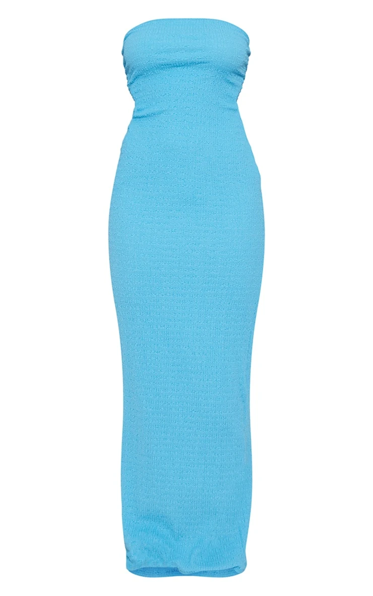 Take your wardrobe to new heights this season with this blue textured detail bandeau maxi dress. Its blue textured material adds some bold hues to your look whilst its bandeau neckline is seriously flattering. This maxi dress is sure to become your new go-to whether you have weekend plans or need to freshen up your wardrobe. Style effortlessly with platform sandals and gold accessories for a look that is sure to impress.