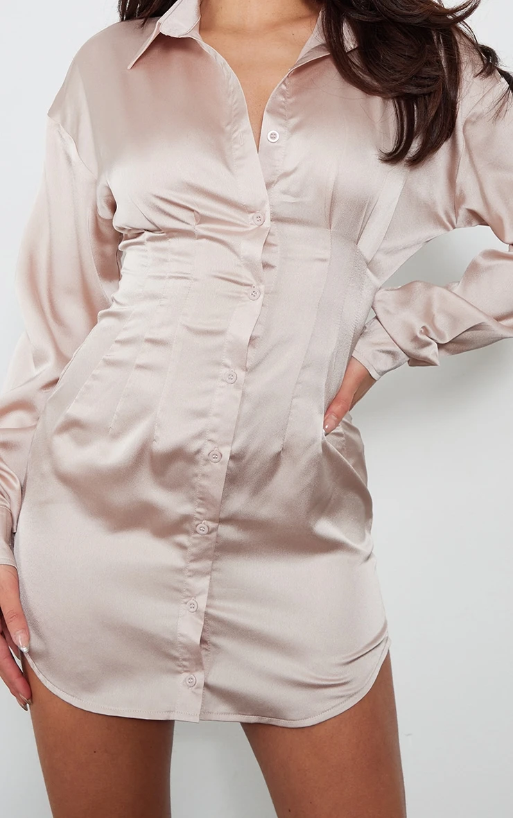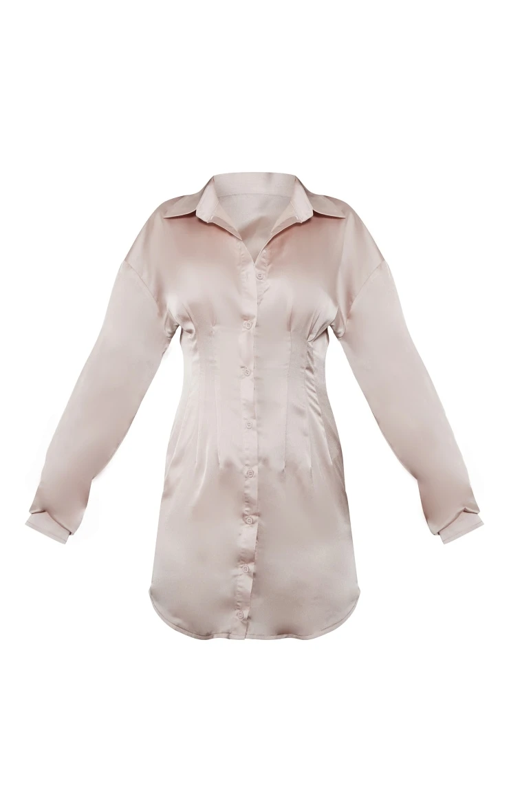 Your what to wear dilemmas have finally been found with this champagne satin fitted waist shirt dress. If a night out with the dolls is on the list then this women’s shirt dress is the piece you need. Brought to you in a champagne satin material with a fitted waist and a button-up front, we can’t get enough. Shop the look and add clear high heels and statement accessories for a glam finish.