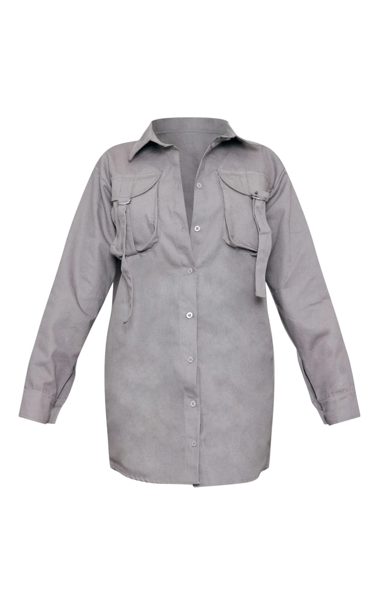 Go for an effortlessly cool vibe on your off-duty days with this shirt dress doll. Featuring a charcoal hue material with cargo pocket and buckle details. Add a little edge with chunky boots and shades.