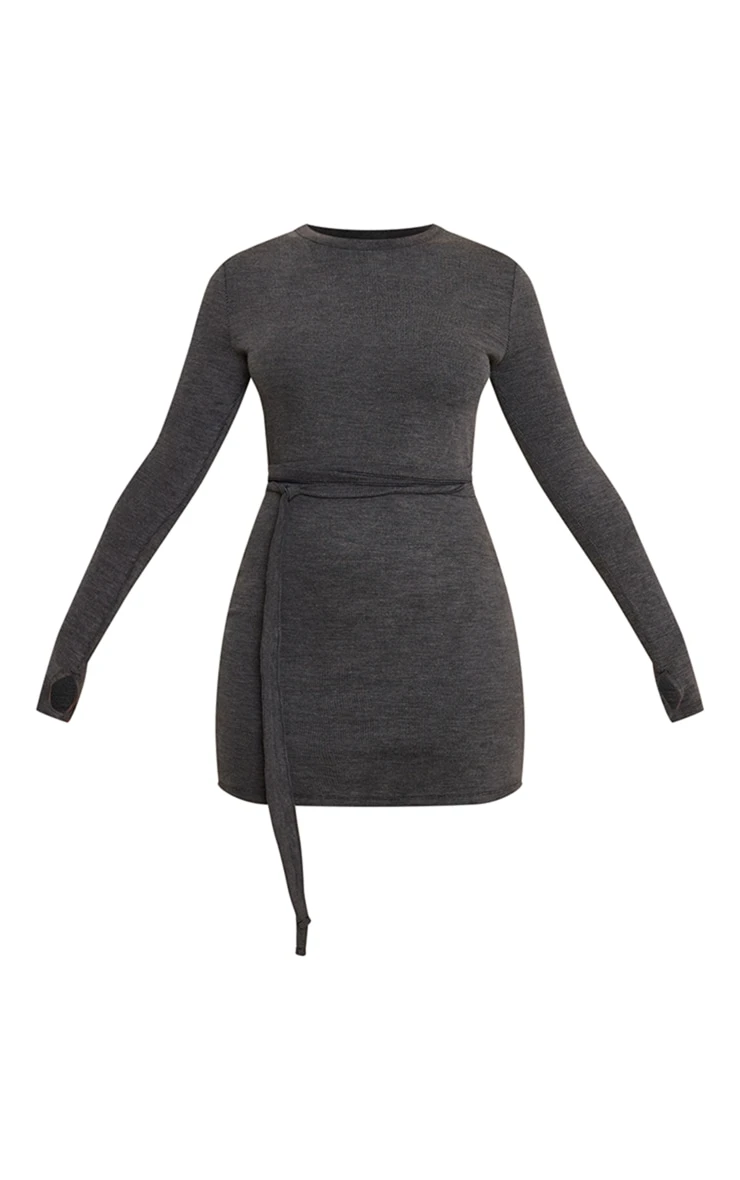 This dress is sure to be a staple piece in your everyday wardrobe. Featuring a charcoal ribbed material with a tie waist design and a figure-hugging fit. Pair with chunky kicks and a trench coat for a chic, blogger-worthy vibe.