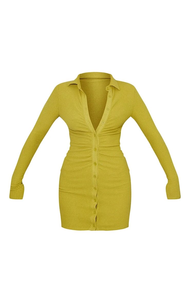 Inject some bold hues into your new season wardrobe with this dress. Featuring a chartreuse rib material with long sleeves and front ruching detail, we’re obsessed. Complete the look with nude accessories and barely-there heels.