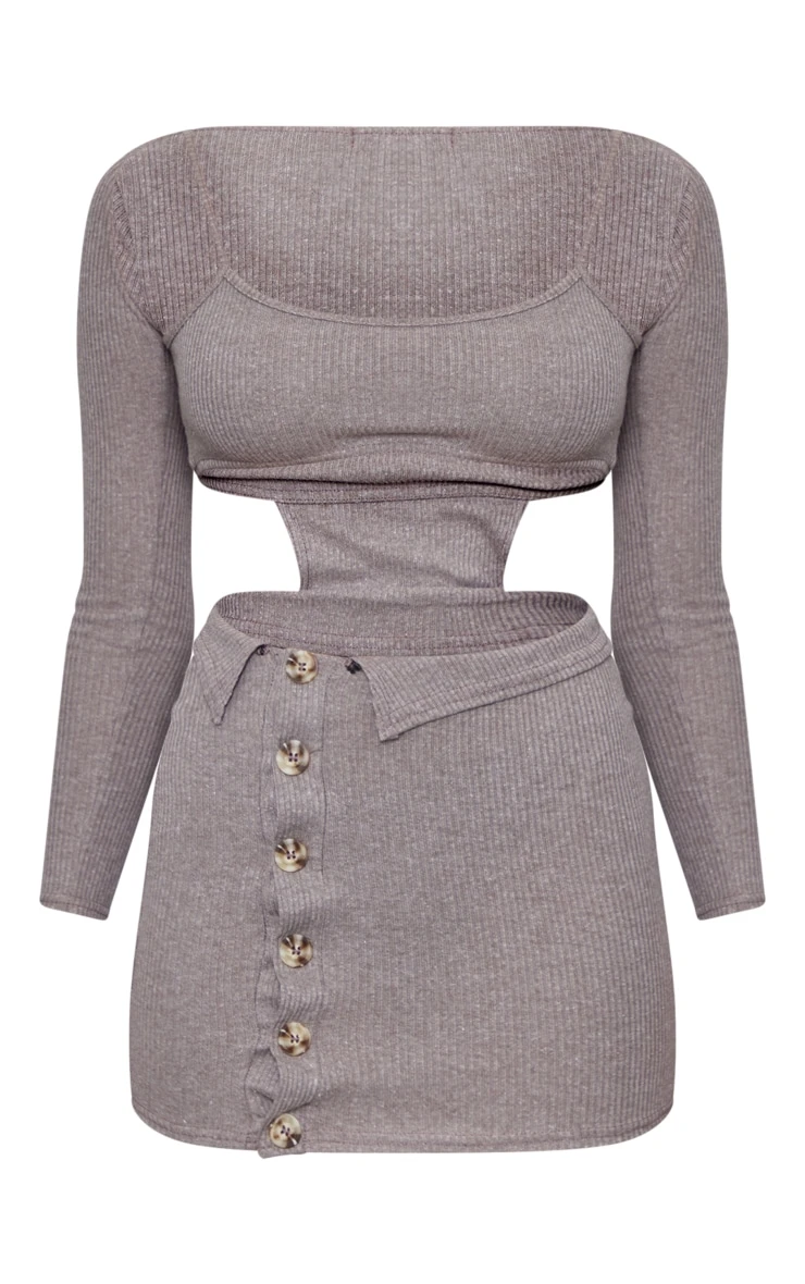 The weekend is calling and so is this unreal dress. Featuring a chocolate ribbed material with a cut-out waist, button detailing and a figure-admiring fit, we’re in love. Wear with your trendy high heels and gold accessories for a glam finish.