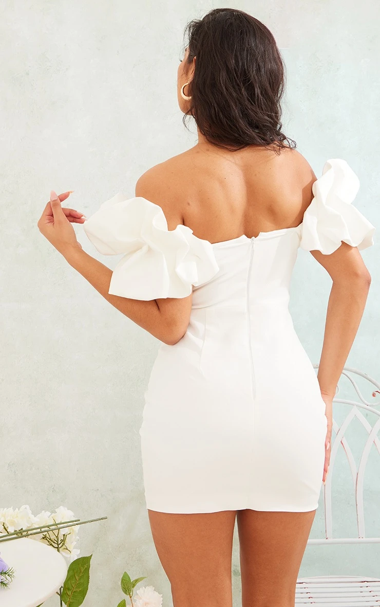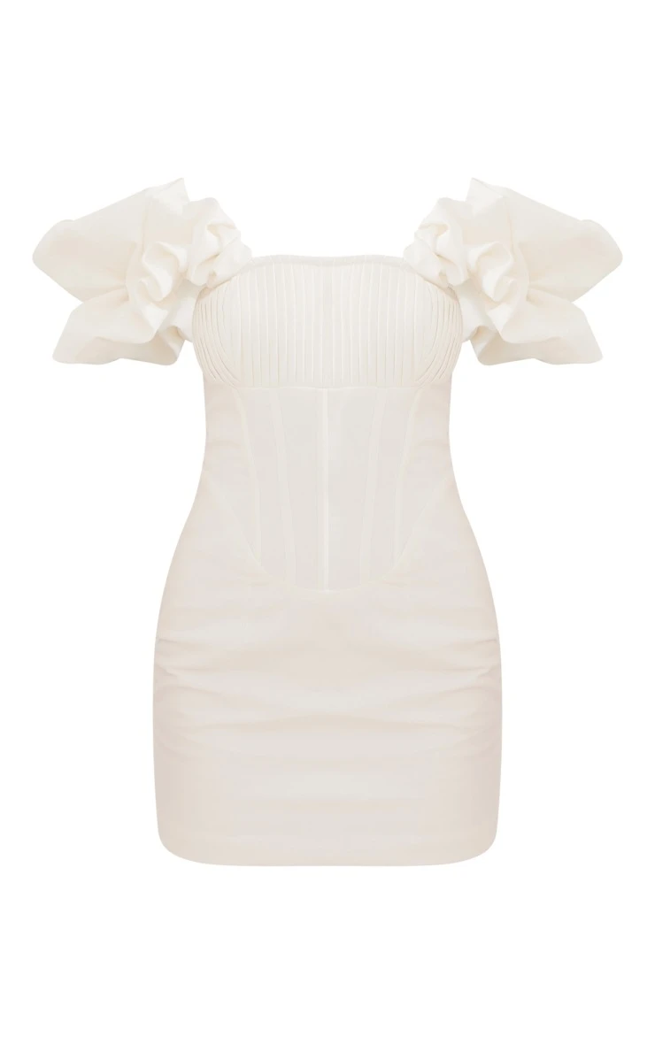 Get your glam on with this cream plated corset detail puff sleeve bodycon dress. Brought to you in a cream pleated material with a corset design, puff sleeves and a figure-hugging fit, what’s not to love? This dress is here to banish any of your what-to-wear dilemmas doll. Shop the look and wear with your clear high heels and gold accessories for a look like no other.