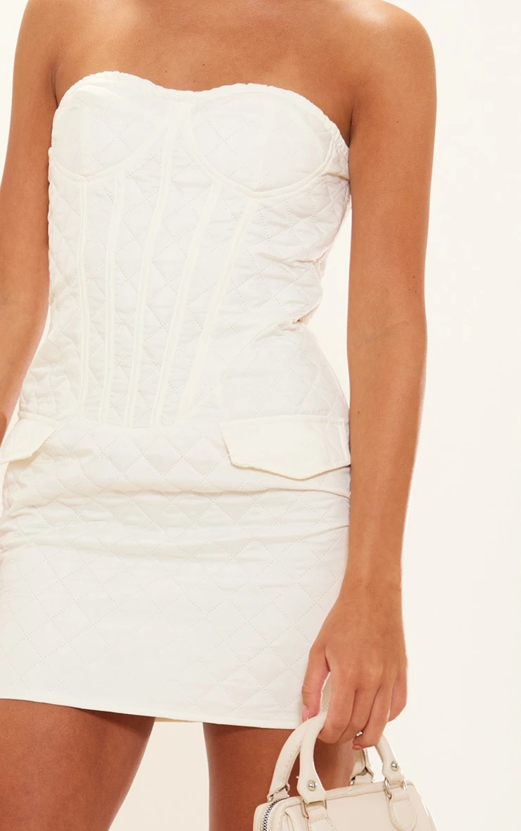 Cream Quilted Underwired Pocket Detail Bandeau Bodycon Dress