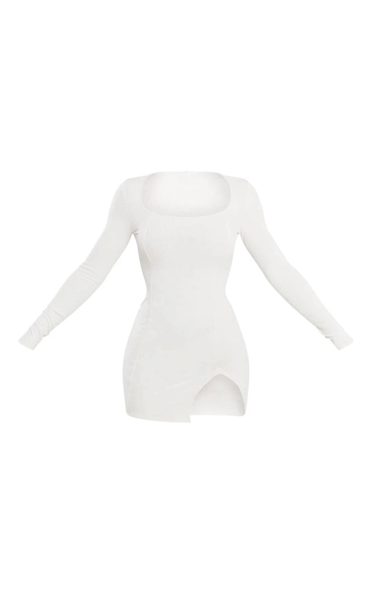 Your what-to-wear dilemmas have finally been found with this cream rib square neck split hem long sleeve bodycon dress. Brought to you in a cream rib material with a square neck a split hem along sleeves and a figure-hugging fit, how could you say no? To level up the look simply add your dreamy high heels and statement accessories for a look that all the dolls will love.