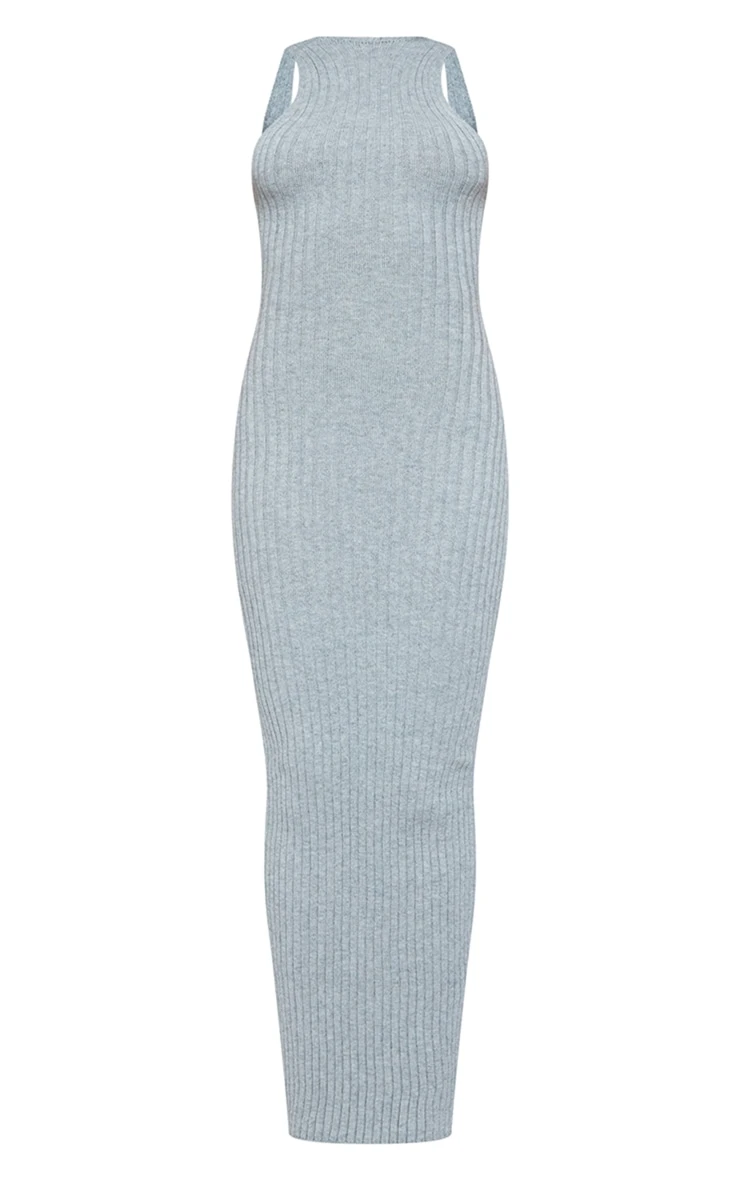 Hit refresh on your new season wardrobe with this grey marl knitted back plunge racer maxi dress, it is everything we are loving to take your look effortlessly from day to night. This dress features a grey marl knitted material with a plunged back design and a maxi length, it’s a definite yes from us. Pair this women’s maxi dress with clear slip-on heels and your biggest hoop earrings for a look that will earn you all the compliments.