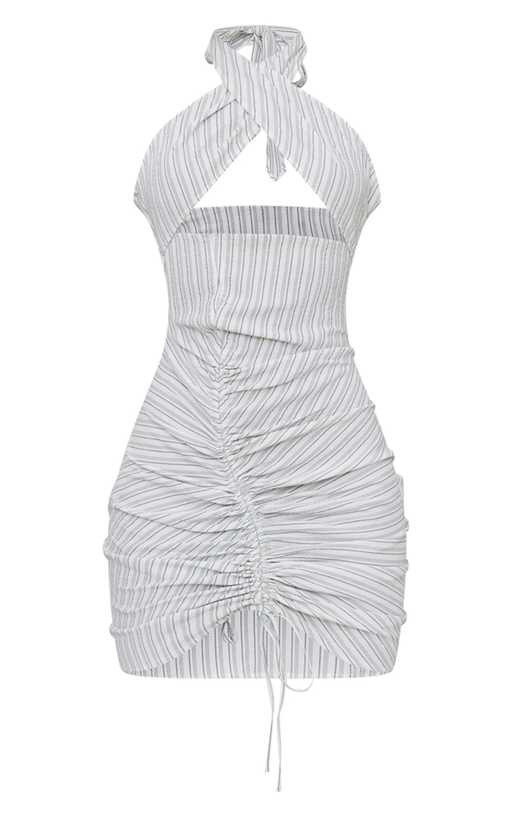 Say hello to your new season staple with this grey stripe textured wrap neck ruched bodycon dress. This bodycon dress is brought to you in a grey stripe textured material with a wrap neck, ruched detailing and a figure-hugging fit, we can’t get enough of this dress doll. To take the look further style this dress with a black shoulder bag, sunnies and sandals. It’s a yes from us doll.