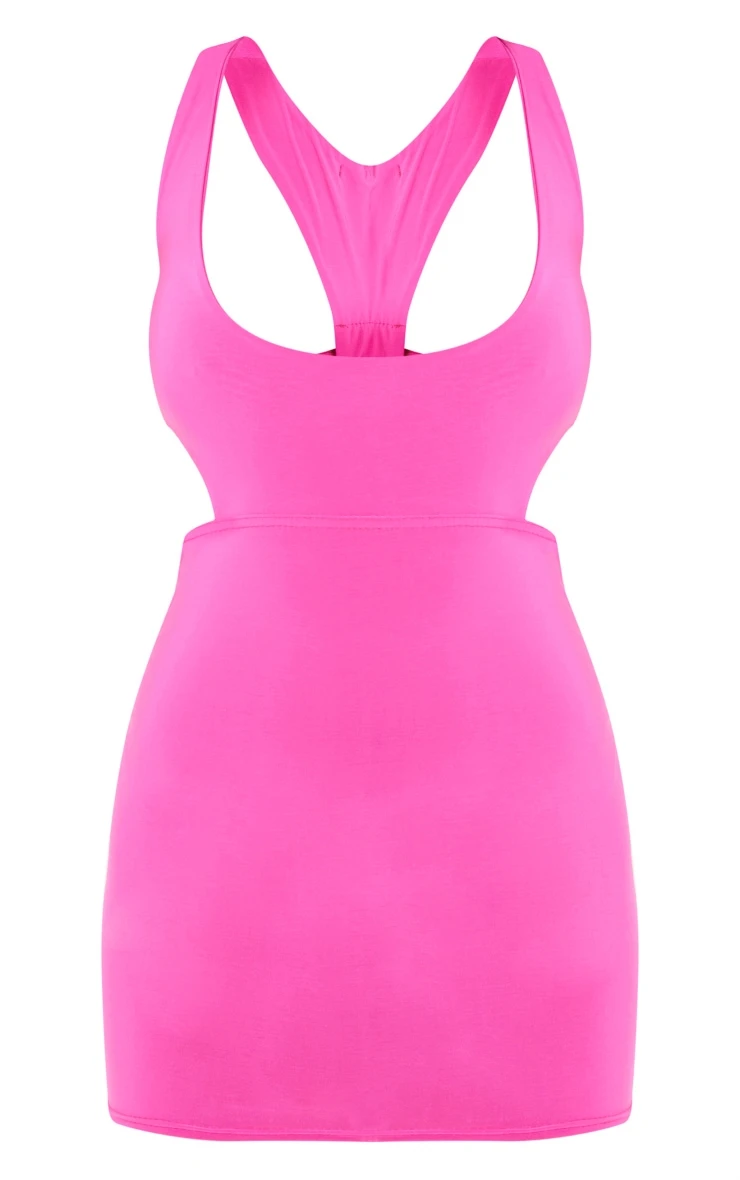 Hot Pink Slinky Cut Out Back Racer Detail Bodycon Dress