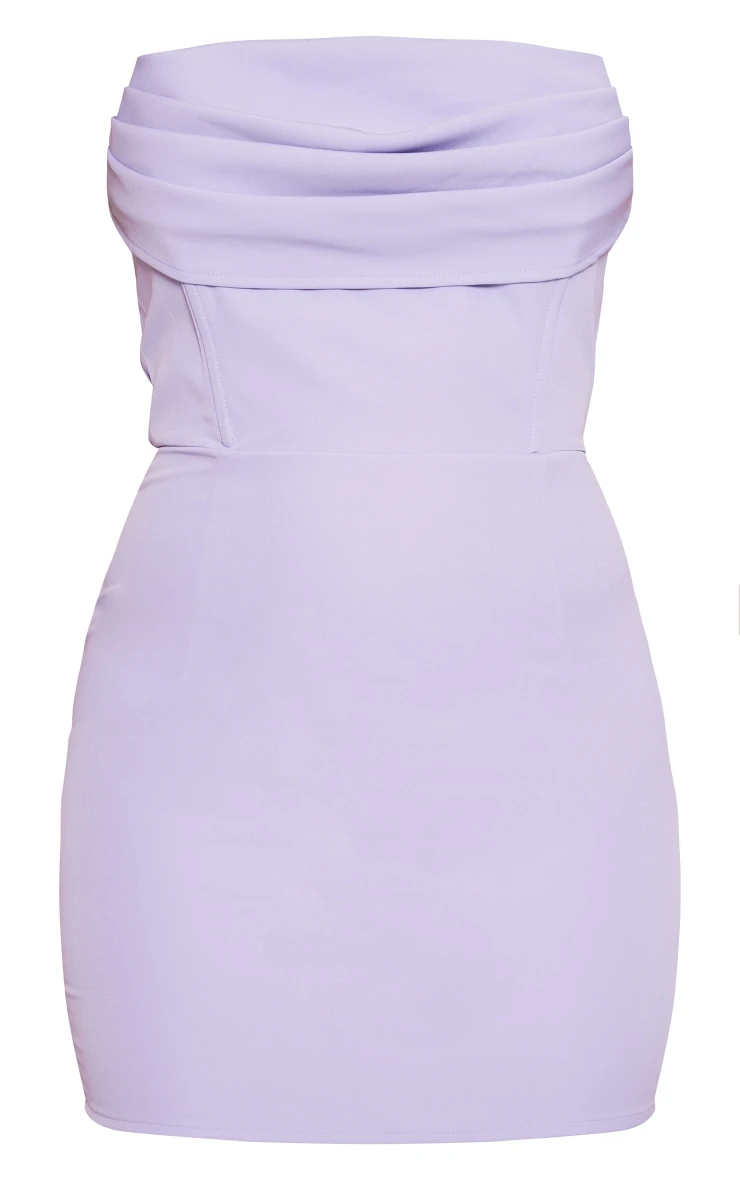 Bring the glam this weekend with this lilac woven bandeau drape cowl detail bodycon dress. Its lilac woven material is super fresh and perfect for the new season whilst its draped cowl detail adds a luxe touch. This bodycon dress has a figure-hugging fit and a bandeau neckline which will show off your unreal curves. Keep this look seriously chic with heeled mules, gold accessories and a fierce attitude.