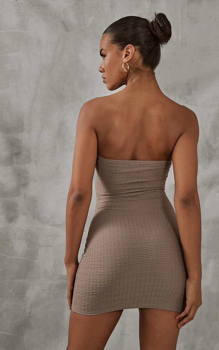 Keep your weekend vibe fiercely feminine with this dress doll. Featuring a mocha textured material with a bandeau design and a bodycon fit, we are obsessed. Team with some strappy heels and a cute shoulder bag to take your look to the next level.
