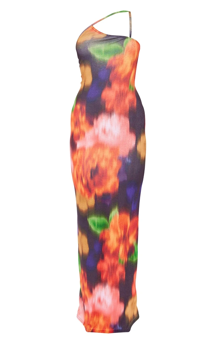 Get ready to make a statement in this multi blurred floral burnout mesh one shoulder maxi dress. Made from a multi hue burnout mesh material and featuring a blurred floral print, this dress is sure to make heads turn doll. With a one shoulder design and a figure-worshipping maxi fit, we just can’t get enough. Just add clear strap heels and gold accessories for a flawless finishin touch.