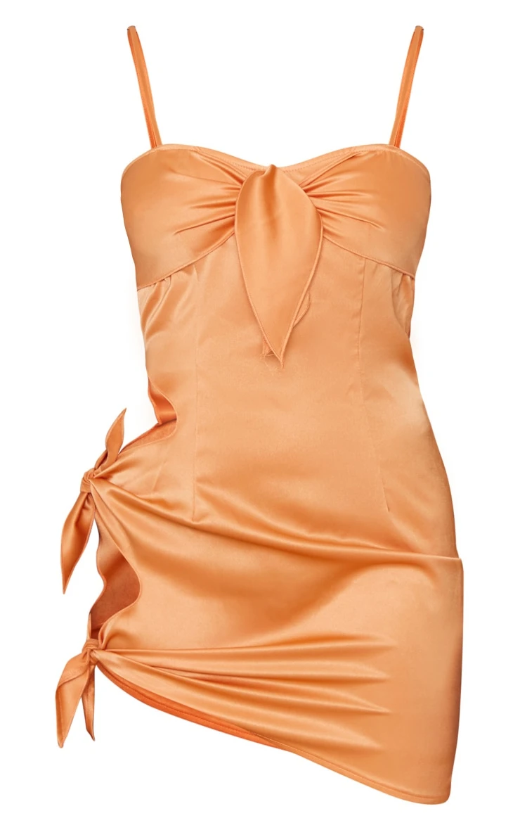 The weekend is here so get ready to make a statement in this orange satin tie detail cut out strappy bodycon dress. Made from an orange hue satin material that is sure to make you stand out from the crowd and featuring a dramatic cut out design with tie detailing, we are obsessed. In a flattering bodycon fit, this strappy dress will have you looking and feeling confident all night long. Just add heels and gold accessories for a flawless finishing touch.