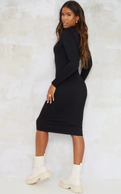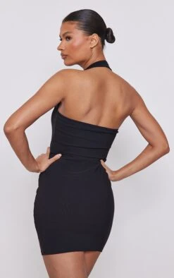 Black Structured Contour Rib High Neck Cut Out Bodycon Dress