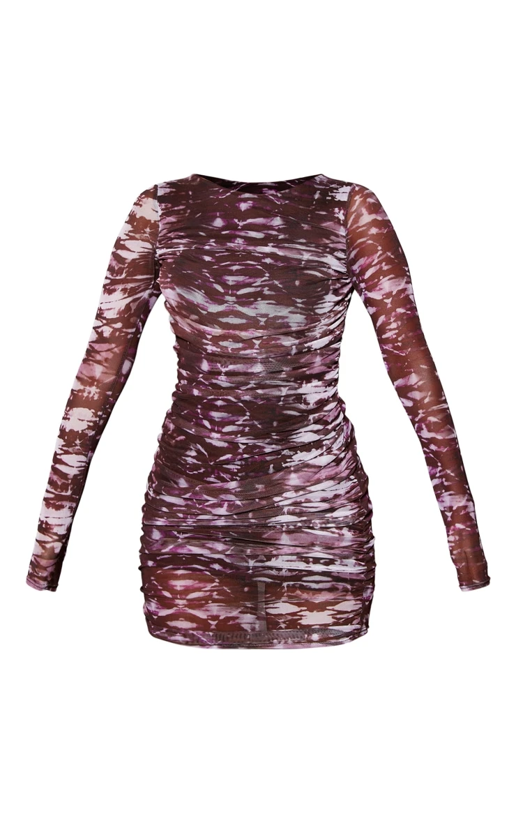 Get ready to stand out from the crowd with this staple purple abstract print mesh ruched bodycon dress. This bodycon dress is the ultimate weekend ‘fit and adds a touch of luxe to your unreal vibe. It features a purple abstract mesh material with ruched detailing and a figure-flattering fit, what’s not to love? Wear with knee-high boots, accessories and a mini bag for a staple finish.