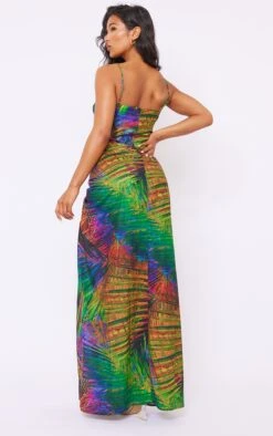 Multi Tie Dye Ditsy Floral Print Shirred V Neck Bodycon Dress