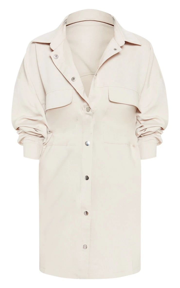 Earn yourself some serious style points with this must-buy dress. Featuring a stone cargo material with an oversized fit and popper fastenings, team with a tape belt and barely-there heels for a look we’re loving.