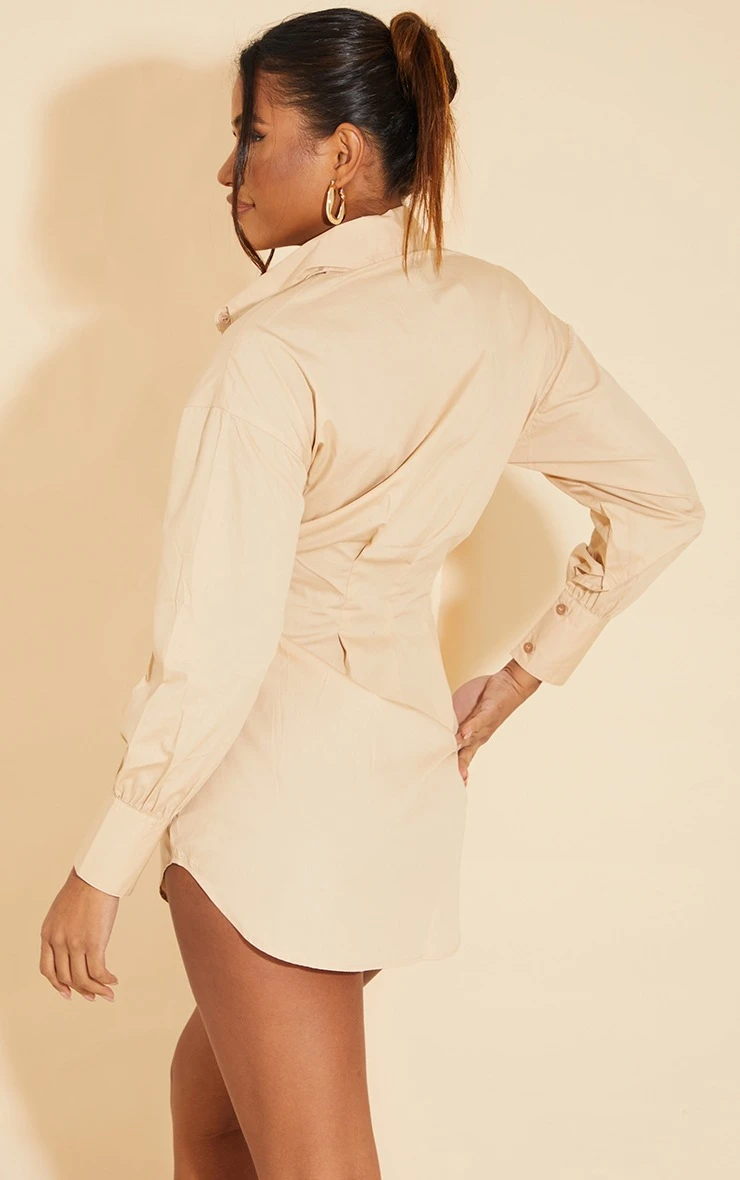 Add some neutral tones to your look this season with this shirt dress doll. Featuring a recycled stone material with long sleeves, a fitted waist design and a flattering fit, we are in love. Style with chunky boots and a trench coat to finish the look.