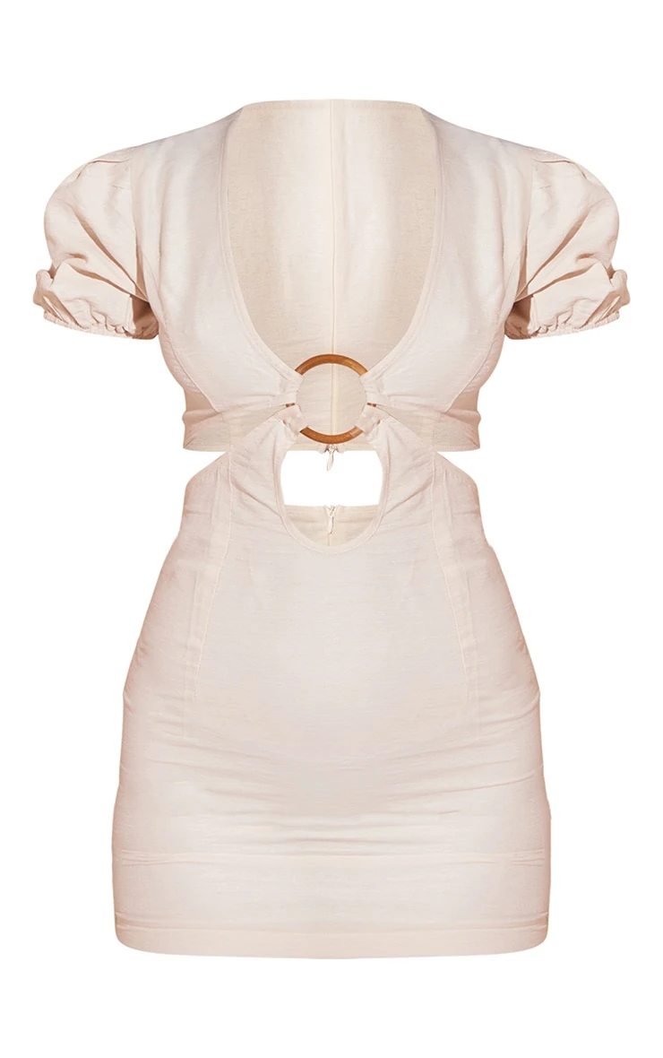 Stone Linen Ring Detail Cut Out Bodycon Dress