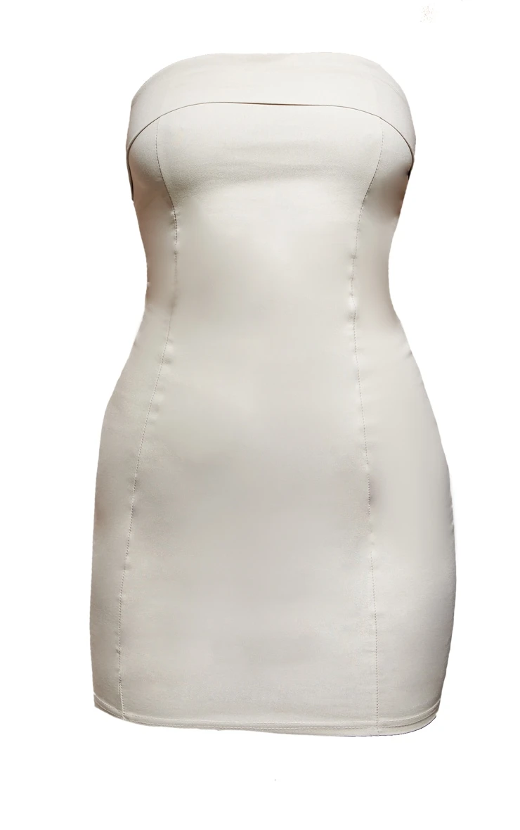 Stone Stretch Woven Bandeau Fold Over Detail Bodycon Dress
