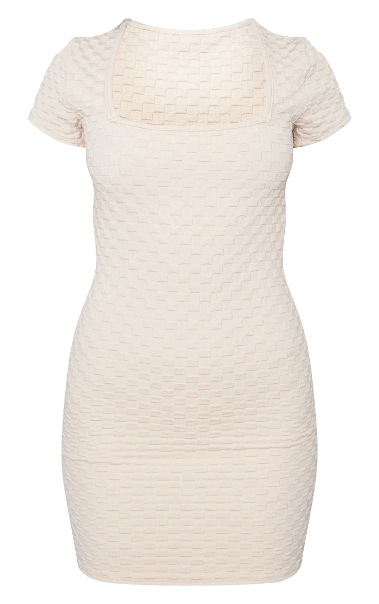 This season a stone textured short sleeve square neck bodycon dress is essential and we are loving this style. With a stone hue, this bodycon dress is perfect for those next upcoming events doll. This dress has a textured material with a square neck design for a look that will have heads turning for all the right reasons. Style with some fresh trainers and your fave sunglasses for a look that can be dressed up or down.